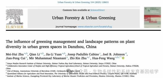 2024年12月,王华锋课题组在《Urban Forestry & Urban Greening》期刊(中科院一区TOP期刊,IF=6)发表题为“The Influence of Greening Management and Landscape Patterns on Plant Diversity in Urban Green Spaces in Danzhou, China”https://doi.org/10.1016/j.ufug.2024.128651的研究论文。yl7703永利硕士研究生朱美惠为该论文的第一作者,王华锋教授为论文的通讯作者。本研究得到国家自然科学基金的资助。