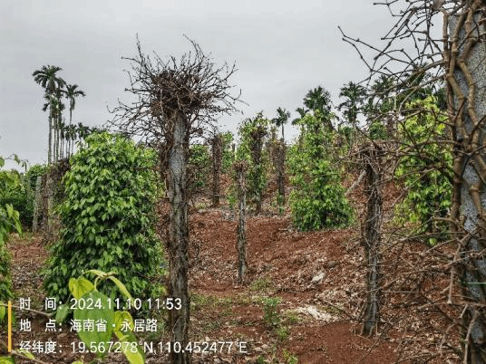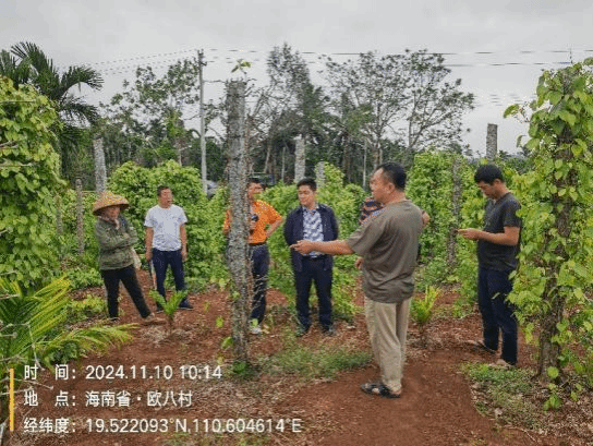 2024年11月10日,yl7703永利科技特派员服务团“胡椒灾后重建与病虫害绿色防控”项目组成员刘铜、张荣意、李增平、邢梦玉等人为了进一步评估“摩羯”灾后复产情况,与海口市大坡镇、定安县定城镇、文昌市蓬莱镇镇政府工作人员一同前往胡椒园区开展调查工作。