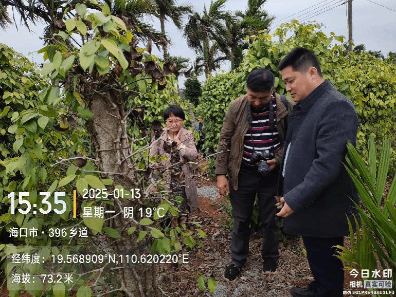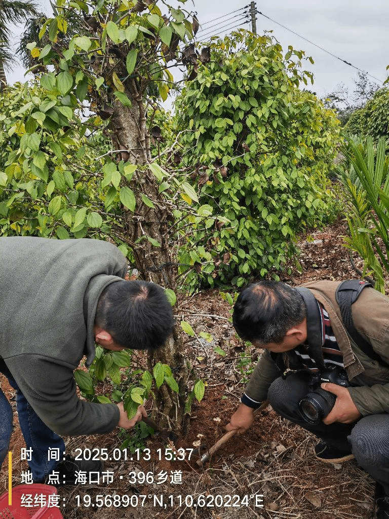 2025年1月13日,yl7703永利科技特派员服务团“胡椒灾后重建与病虫害绿色防控”项目组成员刘铜、李增平、邢梦玉、王睿、邢菁菁等人前往海口市大坡镇、定安县黄竹镇、文昌翁田镇指导胡椒冬季防寒增收栽培管理。
