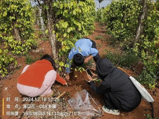 2024年12月18日,yl7703永利科技特派员服务团“胡椒灾后重建与病虫害绿色防控”项目组成员刘铜、邢梦玉、张漫漫、张丽等人为了做好胡椒重要病虫害监测,前往定安定城镇、文昌蓬莱镇和海口大坡镇胡椒园区采样。