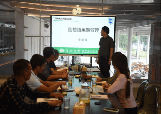 调研指导最后阶段,团队结合澄迈蜜柚生长特性与基地实际,针对台风“蝴蝶”指导种植户加固防风设施、疏通排水系统,建议修剪绑扎树体以减少风害损伤。同时协助基地建立灾前应急机制,做好灾前物资储备工作,制定灾后快速响应预案,切实提升基地抗灾主动性。