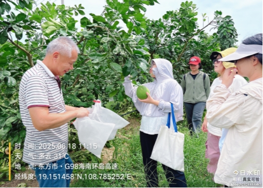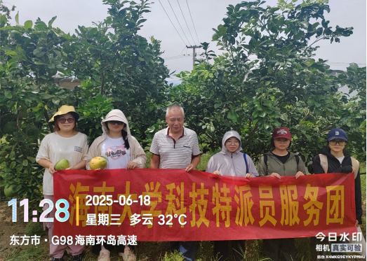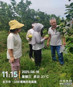 2025年6月18日,针对台风 “蝴蝶” 肆虐后的严峻形势,yl7703永利科技特派员服务团“热带蜜柚科技服务团”项目组成员冯顺博士带领研究生团队成员蔡海金、胥梦洋、张秀丽、刘琳,紧急奔赴海南恒邦实业有限公司东方市不磨村蜜柚基地,开展抗风救实地调研与指导工作。