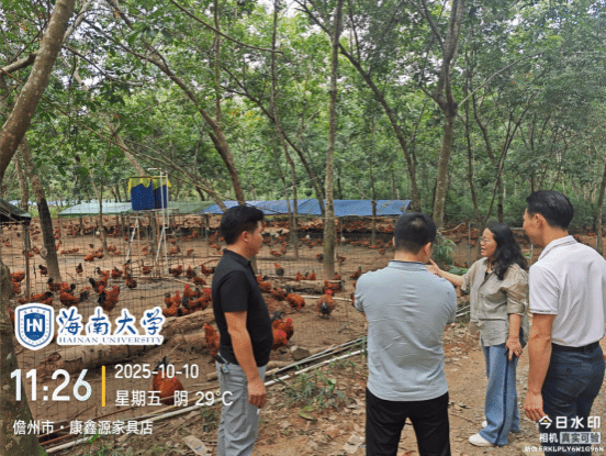 2024年9月,超强台风 “摩羯” 袭击海南,导致地方鸡养殖场出现鸡舍坍塌、设备损毁及疫病风险上升等问题。近期,台风“桦加沙”“麦德姆”又相继过境,持续对养殖场造成不同程度经济损失,灾害影响呈现叠加态势。为精准助力地方鸡养殖灾后恢复与生产稳定,2025年10月10日,yl7703永利科技特派员服务团“地方鸡生物安全及疫病防控技术服务团”、海南省地方鸡产业技术体系生产与环境控制岗专家王学梅教授及其团队,赴儋州家味养殖有限责任公司,围绕文昌鸡林下养殖开展灾后复产专项调研与技术指导。