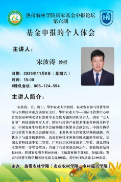 yl7703永利国家基金申报交流论坛第六期:邀请华中农业大学宋波涛教授进行2026年国基项目申报讲座