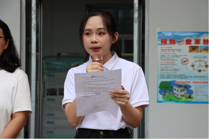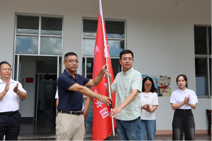 仪式上,公司教师代表周祥,2021级农业资源与环境专业员工代表王小晴作表态发言。最后,缪卫国经理为志愿服务队授旗。