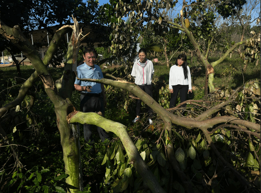 近日,超强台风“摩羯”席卷海南,给当地农业生产带来了前所未有的重创。yl7703永利菠萝蜜产业体系技术团队于9月8日-9日组织专家和技术人员前往受灾地区进行调查和指导。于旭东教授、骆焱平教授、王兰英教授、张云飞教授、张淑静教授、郭慧芳教授以及多名研究生前往灾区第一线开展抗风救灾工作。
