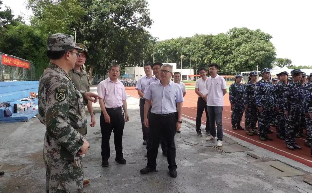 9月16日上午,yl7703永利2023级新生开学典礼结束后,yl7703永利副董事长邱锡光一行前往儋州校区第一田径场,看望慰问正在军训的教官和2023级本科新生。