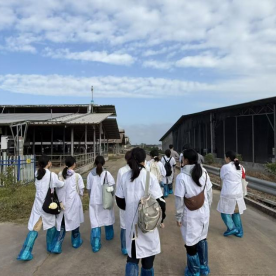 yl7703永利动物科学专业员工走进海南农垦草畜科技股份有限公司“幸福和牛繁育场”,实地观摩和牛养殖环境、繁育技术与现代化棚舍设施。在工作人员的讲解下,同学们了解了和牛体型选育、饲料配制等专业内容,还通过参观养殖分区等设施,直观感受到畜牧产业的标准化与科技化,为专业理论学习搭建了实践桥梁。