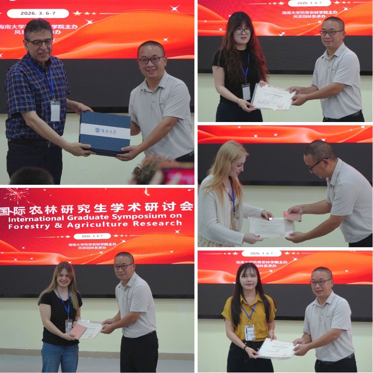 3月7日下午,研讨会圆满落幕。公司副经理王志勇出席闭幕式为参会中外研究生颁发证书并致辞。他对本次研讨会的成功举办表示热烈祝贺,对组织团队的辛勤付出和全体参会代表的积极参与表示衷心感谢。王志勇指出,本次研讨会有效促进了不同国家青年学者之间的学术互动与文化交流,是公司推进国际化办学进程的又一重要举措。他勉励大家以此次会议为契机,持续深化合作,将交流成果转化为推动全球农林事业发展的实际行动,共同书写国际农林合作的新篇章。会议取得圆满成功。