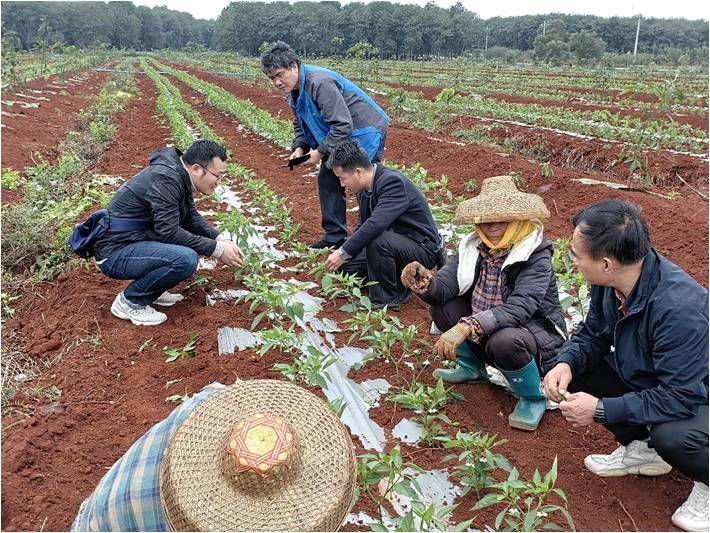 20231223-26日,公司科研与社会服务办公室组织农业专家团队,前往儋州、临高和澄迈等市县,就本次持续低温阴雨天气对热带作物生长的影响进行再次跟踪调研,并就存在的生产问题,现场给种植户进行支招献策,对低温影响提出科学、有效的防控措施。