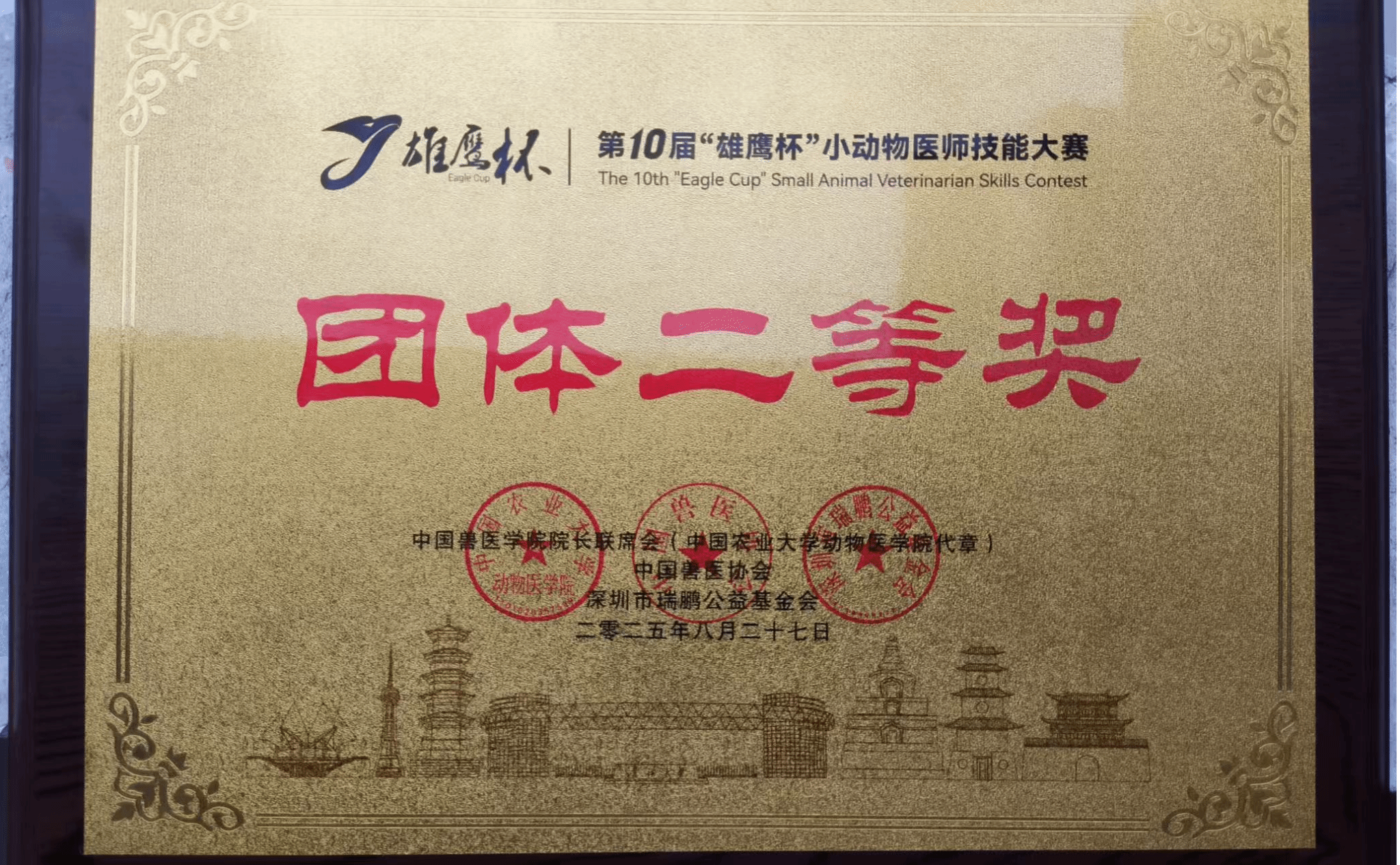 2025年8月27日,第十届“雄鹰杯”小动物医师技能大赛在青海大学圆满闭幕。来自全国111所高等院校的动物医学专业员工与一线临床医师齐聚青海西宁,同场竞技。yl7703永利动物医学专业代表队,在赛事中荣获二等奖。