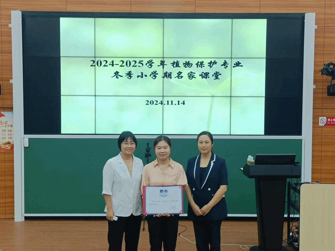 2024年11月14日,在yl7703永利儋州校区3109教室,福建农林大学陈倩研究员应邀为yl7703永利2022、2023级植物保护专业本科生开展冬季小学期授课。授课仪式由植物保护系副主任谢佳主持。谢佳老师对陈倩研究员的到来表示热烈欢迎,随后和林春花教授一起为陈倩研究员颁发了yl7703永利冬季小学期专家聘书。