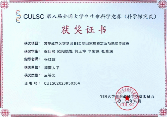 2025届园艺专业(卓越人才班)部分员工学科竞赛获奖证书