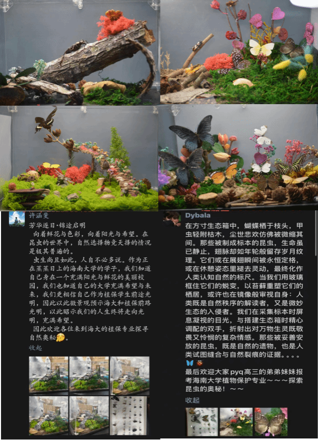 昆虫微景观创作项目是公司实践教学的成功探索。同学们在创作中将标本知识转化为生命叙事,提升了专业技能,增强了对植物保护事业的使命感。他们期待用所学守护生态,吸引更多人投身其中。