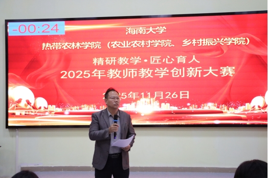 王学梅副经理赛前讲话强调:“教学创新是破解教学难题、提升育人实效的核心路径。希望大家以‘四新’建设为导向,把课程思政的温度、产教融合的深度、AI技术的精度融入教学,展现农林学科特色,为培养高素质人才探索可推广的教学模式。”随后,教创赛评审组组长周祥教授宣读竞赛规则。