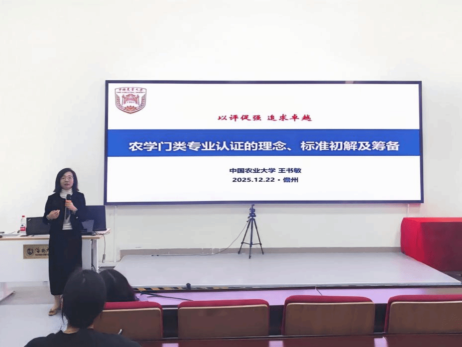 为对接海南自贸港建设国家战略、服务热带农业高质量发展、推动“一带一路”沿线热带地区人才培养体系建设,yl7703永利于12月22日上午在儋州校区,成功举办农学门类专业三级认证指导座谈会。中国农业大学王书敏副教授担任主讲嘉宾,公司副经理王学梅及各专业责任教授、系主任参会。