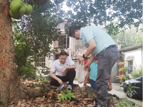 此次调研,团队老师特别注意到该菠萝蜜树形、果形、叶形的独特之处,相较于普通马来西亚1号菠萝蜜,该树树干呈微红褐色,枝条密度中等,叶形相对细长,果形圆润饱满,具有明显的区别特征。团队继续调查农场周围菠萝蜜,大多为30-50年优良品质树种,树况健康,果实品质优秀,为yl7703永利种质调查研究工作提供了优越的物质条件,或将作为yl7703永利菠萝蜜研究的优质后备种植圃。