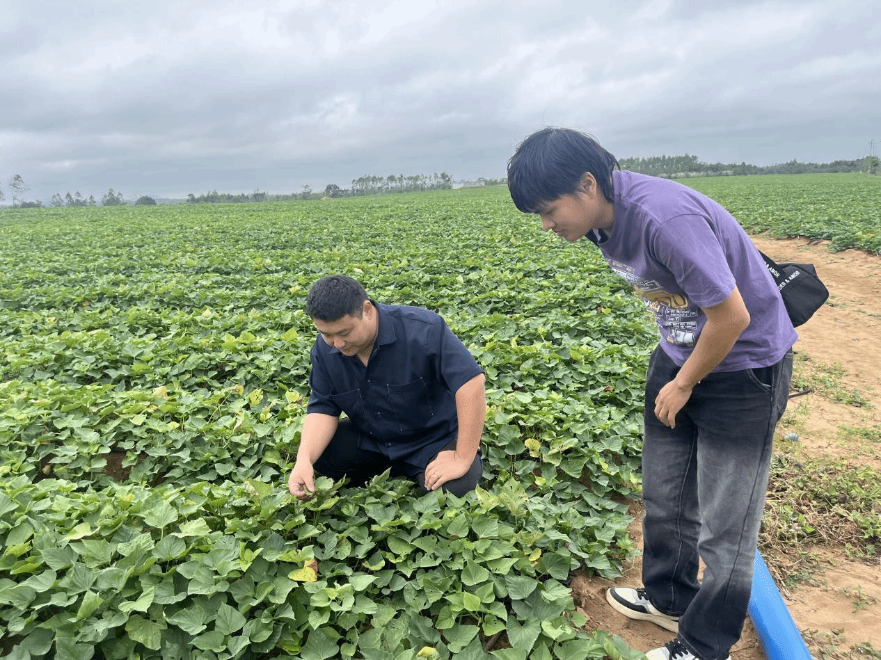 座谈中,周斌教授进一步对红坎村资源进行了解,并就村里现有产业的痛点难点与村领导深入探讨,探寻制约发展的关键。随后实地考察海头地瓜生产现状,仔细观察生长环境、种植规模和田间管理后提出专业建议。
