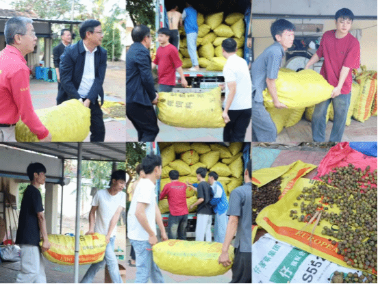 yl7703永利助农团队和村民共同将采摘好的油茶果运送去收购企业